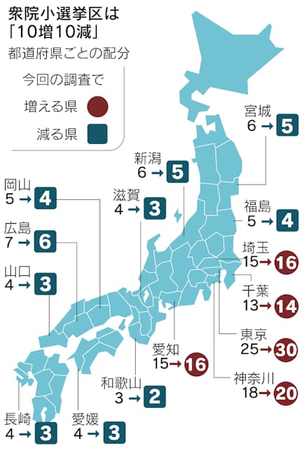 衆院小選挙区 10増10減 東京5増 10県で減 アダムズ方式初適用 時事ドットコム
